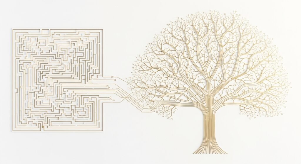 Think of it like the difference between a maze with predetermined paths and a conversation with a knowledgeable friend. The maze has fixed routes. The conversation flows naturally based on what you say.